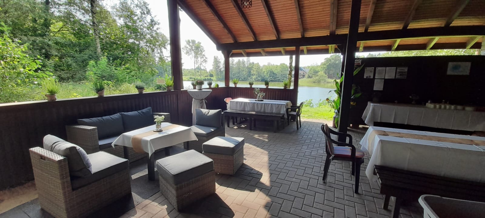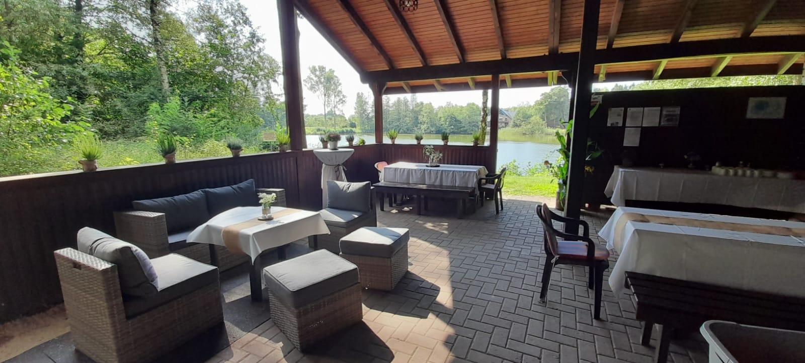 - Überdachter Außenbereich: Genießen Sie den Blick auf die Teiche, geschützt und wetterunabhängig.